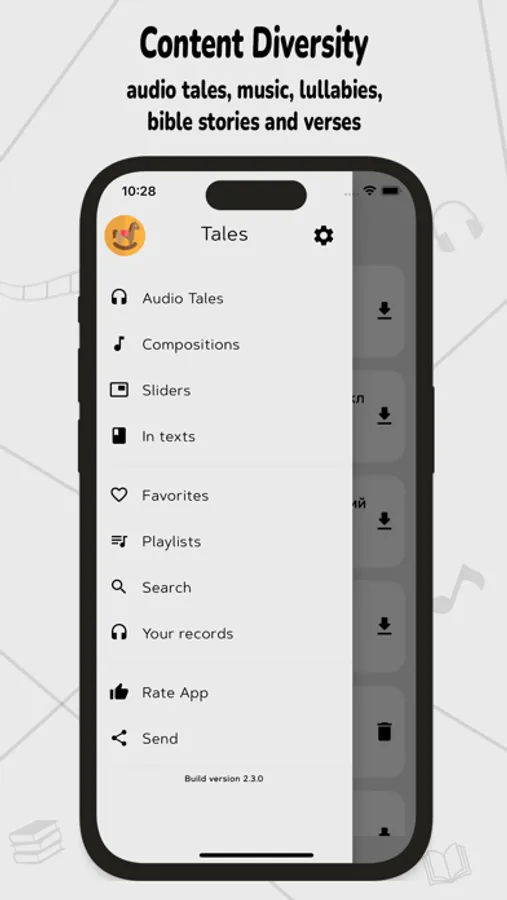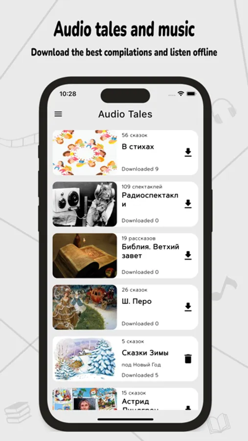 Each fairy tale is voiced by talented actors and accompanied by wonderful illustrations from the most popular children's books. Our application offers many different audio fairy tales and melodies that will attract attention and immerse your child in the exciting world of sleep.
