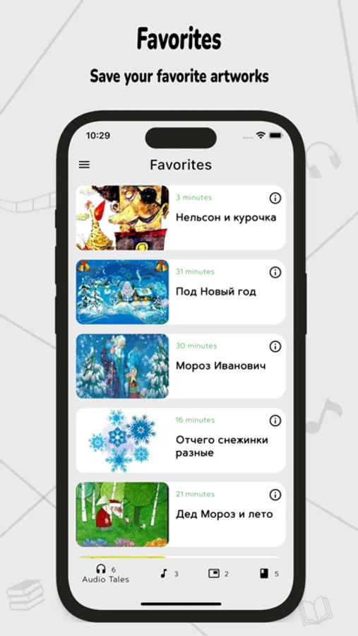 Our app also has a feature to save favorite works, so your child can always easily find their favorite nursery rhymes and tunes. In addition, you can create your own playlists, combine different little stories and music to customize your little one's experience.