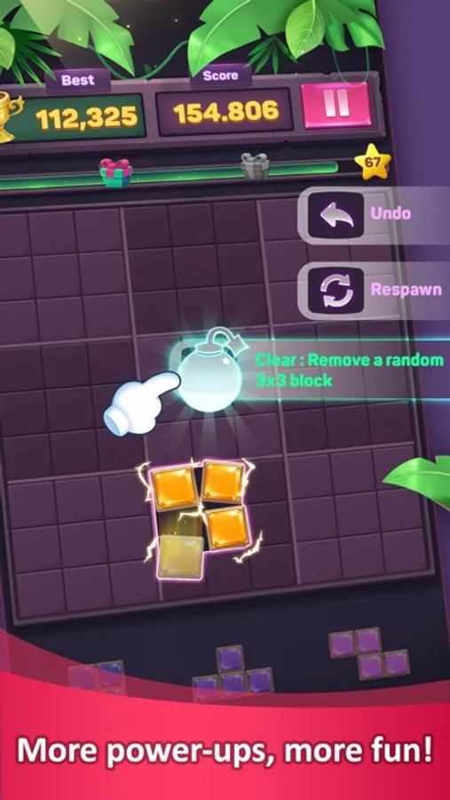 Gemoku is easy to play yet full of challenge! Players have to take advantage of their logical thinking skills to put blocks with different shapes in just the right place. It requires strategy to make decisions. One little step can give the player the highest score trophy or end the whole game!