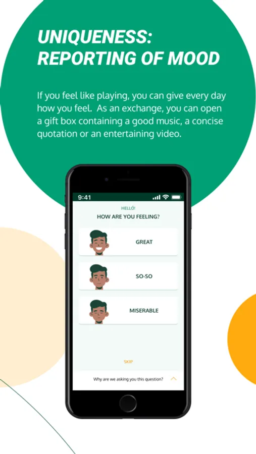 An optional “mood report” function allows students to indicate their daily and current mood. This function features a “gift box”, which can be opened in exchange for providing this information. Hidden inside may be some good music, a witty quotation, or an entertaining video. After providing a certain number of mood reports, the student also receives unique, university gift items.