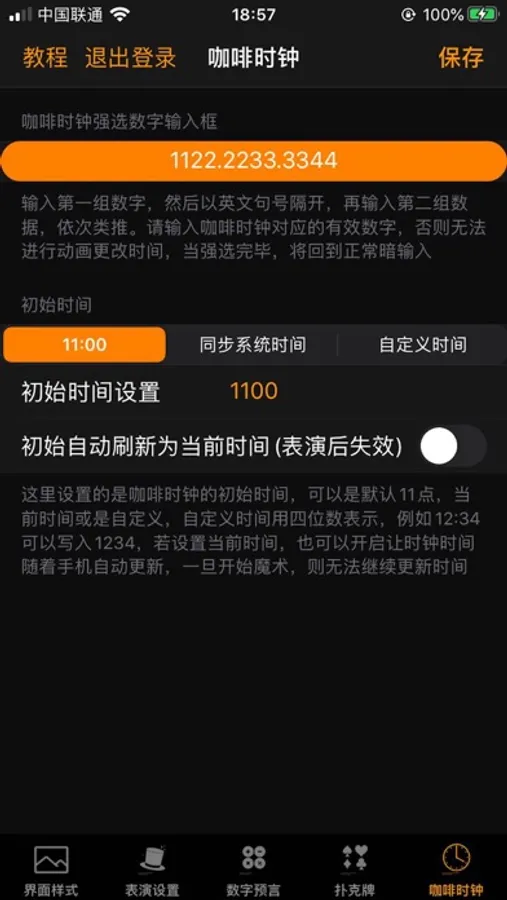 1. 支持扑克,数字预言,咖啡时钟三种表演模式。