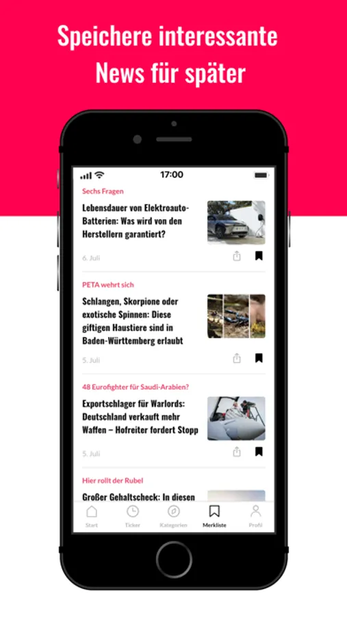 Wenn Sie sich für bestimmte Rubriken besonders begeistern, können Sie in unserer BW24-App Ihre bevorzugten Themen favorisieren und filtern. So verpassen Sie keine wichtige Schlagzeile mehr!