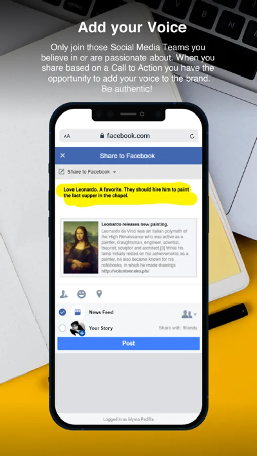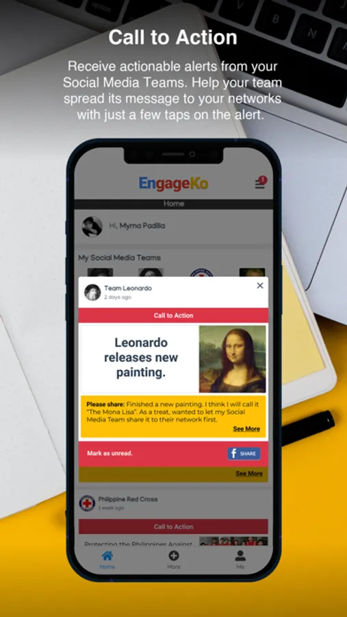 Volunteers receive "Calls to Action" from the Teams they join to perform certain tasks, such as, sharing or commenting on a post.