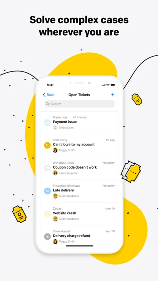 Manage complex cases inside your iOS app with our built-in ticketing system. Reassign tickets between groups, keep all open cases in a specific folder, and find the ticket status in the blink of an eye.