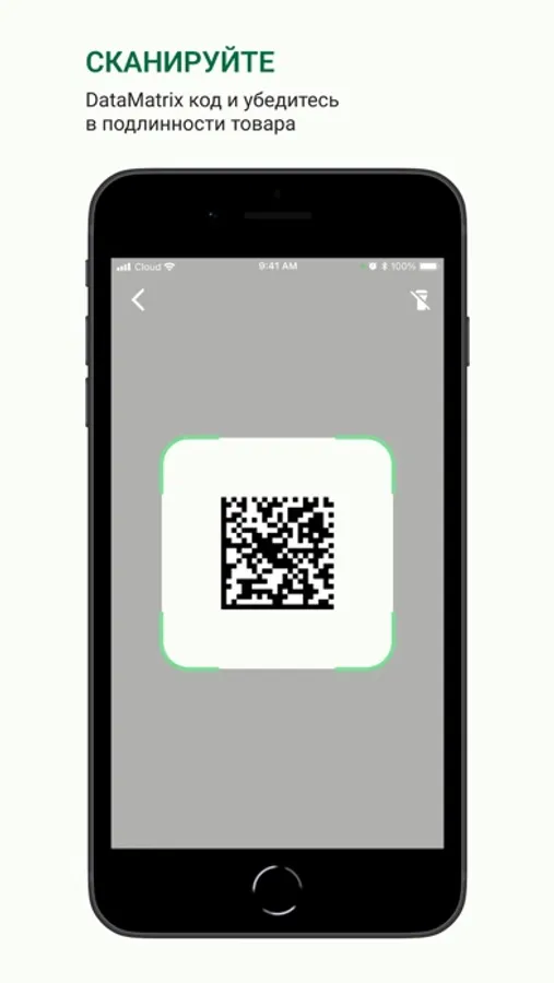 Покупателю необходимо найти на упаковке товара цифровой код Data Matrix, и отсканировать его через приложение.
