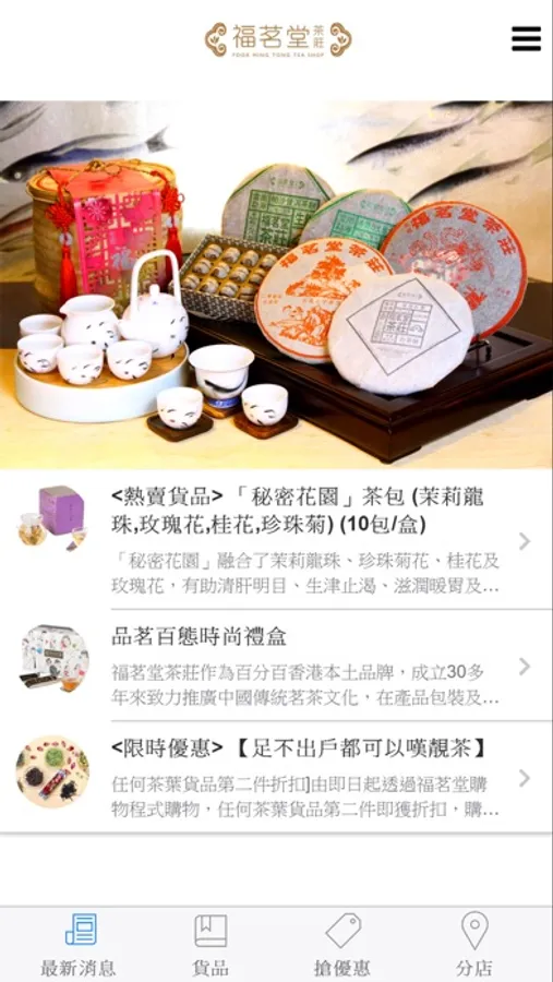 透過福茗堂手機程式,讓你更了解茶知識之餘,更讓你隨時隨地,選購你喜歡的中國茶葉、茶包及送禮佳品!此外,登記資料,每次消費,可記錄積分。憑指定消費額可升級成為會員,及以指定積分兌換限量禮品,亦可發掘最新優惠及資訊,享盡優惠及方便。