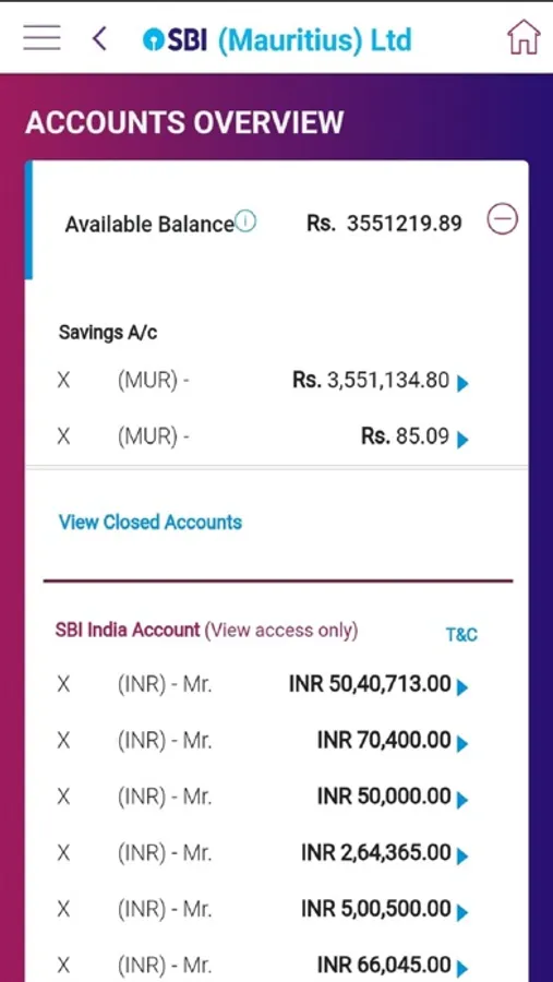 One View: No need to keep two separate apps to view your Indian and Mauritius accounts. Use the one view feature to view all your SBI accounts in one place now!