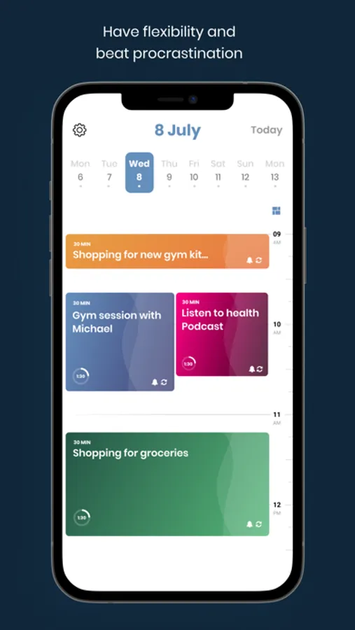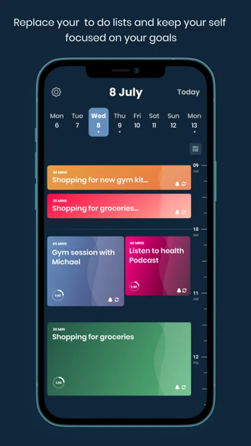 Time Block is easy to use. Each day you fill out your time block grid with your daily activities and allocate them a time slot. If you get knocked off this schedule, you simply drag the blocks to an appropriate time. Get reminders when a slot if about to start and mark activities complete when done. You can quickly capture tasks and notes. And that’s all there is to it!
