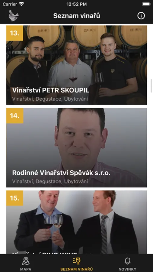 Spolek Velkobílovických vinařů si pro Vás připravil přehlednou online aplikaci, která Vás pomocí mapy zavede do každého vinařství ve Velkých Bílovicích. V aplikaci kromě kontaktů a navigace do vinařství můžete vidět, které vinařství má právě otevřeno, kde probíhá akce "Za vinařem", jestli je možnost objednání degustace a nebo ubytovací kapacitu.