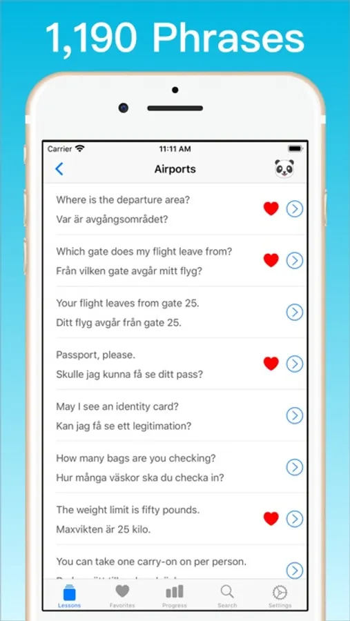 • 1,190 useful phrases such as “Can you speak slowly?” and “Where is the closest cash machine?”.
