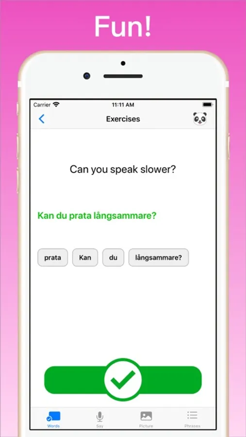 Some of the lessons in Learn Swedish + teach the basics such as telling Time, using the Subway or Eating Out. Others are unique and amusing such as Limousines, Hot Tubs, Pick-up Lines and Rejections. Interactive exercises keep your attention and improve retention. Meerling the meerkat provides help and encouragement.