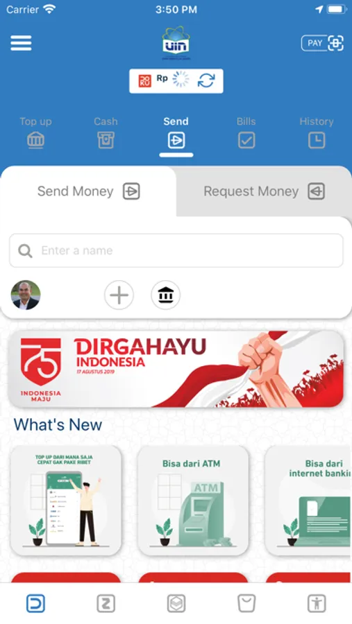 Civitas akademik UIN juga dapat melakukan transaksi keuangan termasuk membayar berbagai macam tagihan bulanan, tagihan uang spp, melakukan donasi, membeli pulsa serta transfer saldo ke sesama pengguna UIN Pay, yang semua dalam genggaman Anda.