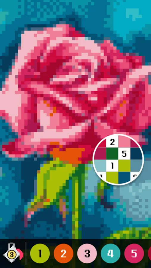 The camera import feature also allows to pixelate real photos, then color them square by square to create beautiful and original pixel artworks.