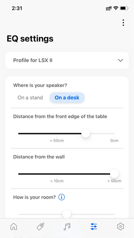 - Optimise your listening experience through Speaker Sound Settings – adjust the output of the speaker to better suit the room and your personal taste