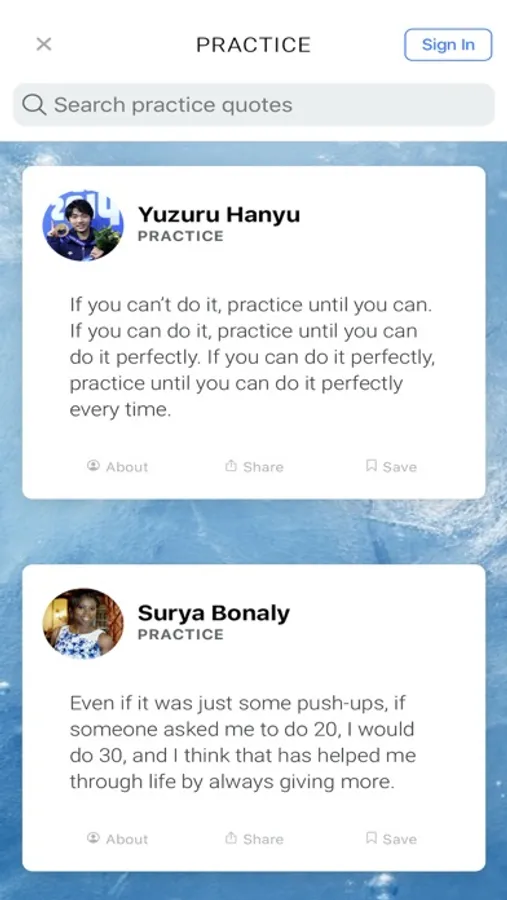 Motivational quotes from famous figure skaters about skating. Save your favorite quotes in the app, so that you can reference them when you need some motivation on and off the ice.