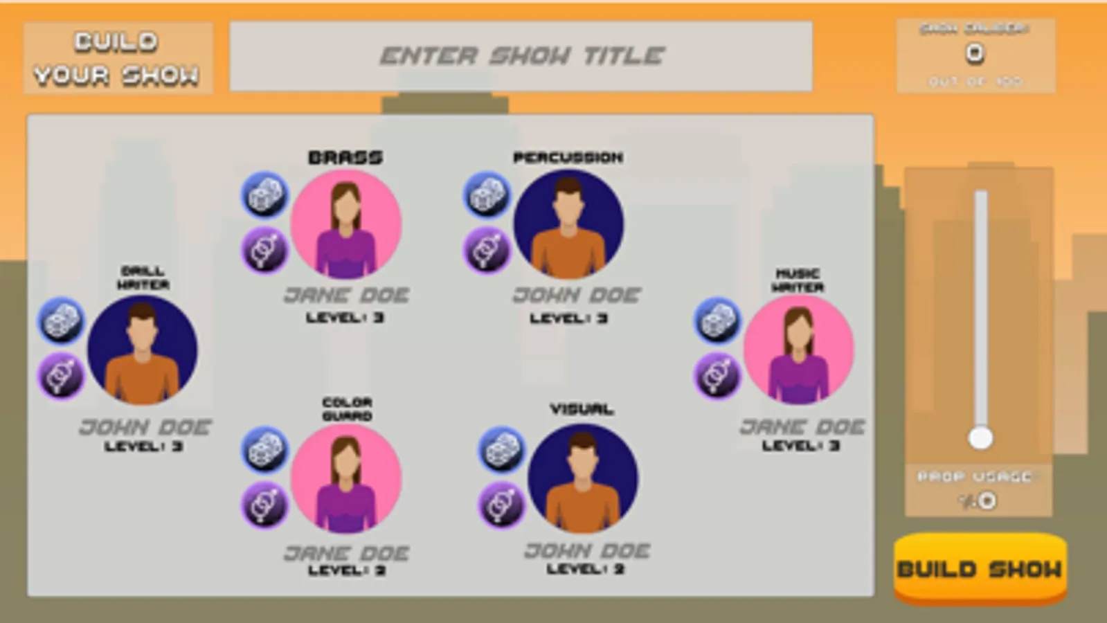 Drum Corps Tycoon is a simple strategy game where the player gets to run their own drum corps and compete against real history drum corps scores. Deal with random events, make design choices, and build your trophy pile on the way to that coveted founders trophy!