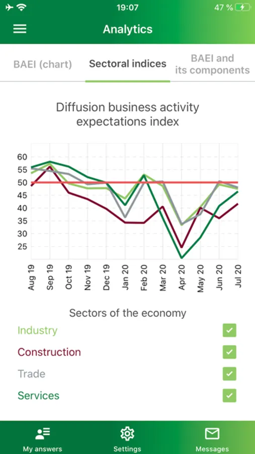The mobile app is a convenient tool for participating in the surveys and receiving reports on trends in economic expectations, and which contains additional modules with analytical services.