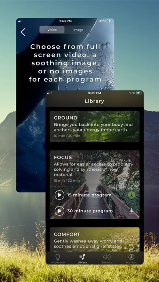 Each unique HUSO On the GO sound frequency program is paired with a companion video, providing a powerful multi-sensory experience easily accessed and on demand through your phone or tablet.