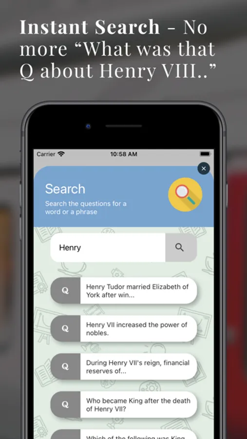 - Exclusive instant search - Type “Henry VIII” and get all the questions about Henry VIII. No more “What was that question about...”.