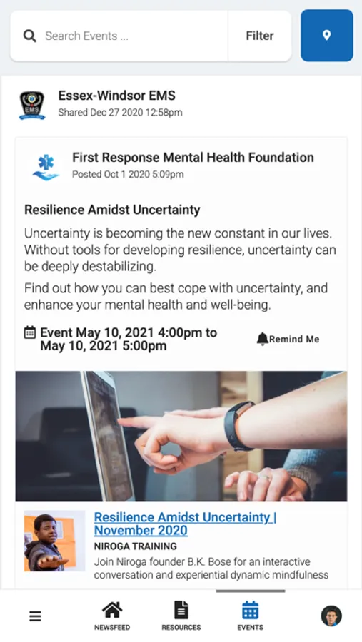 EWEMS PeerConnect users have access to newsfeed articles, resources, and events related to mental health, wellness, culture, and belonging.