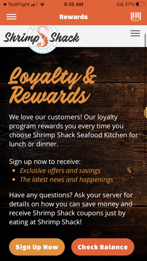 We love our customers! Our loyalty program rewards you every time you choose Shrimp Shack Seafood Kitchen for lunch or dinner.