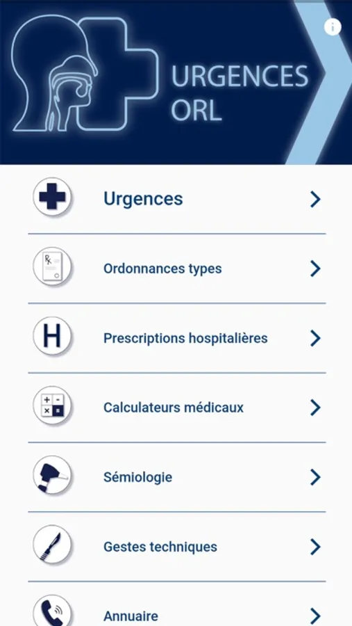 Contient les prise en charges de plus des 30 principales urgences ORL