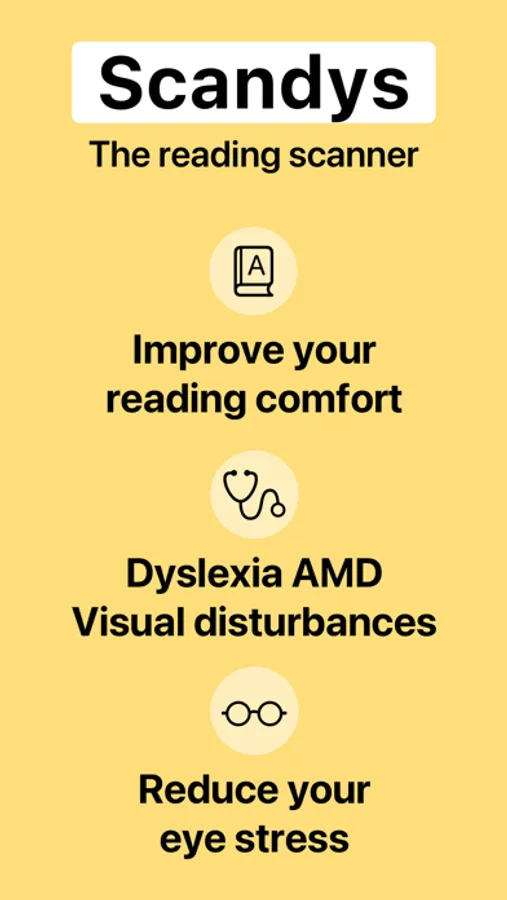 If you suffer from dyslexia, AMD, reading problem or simply a vision problem, Scandys is the application that will help you every day.