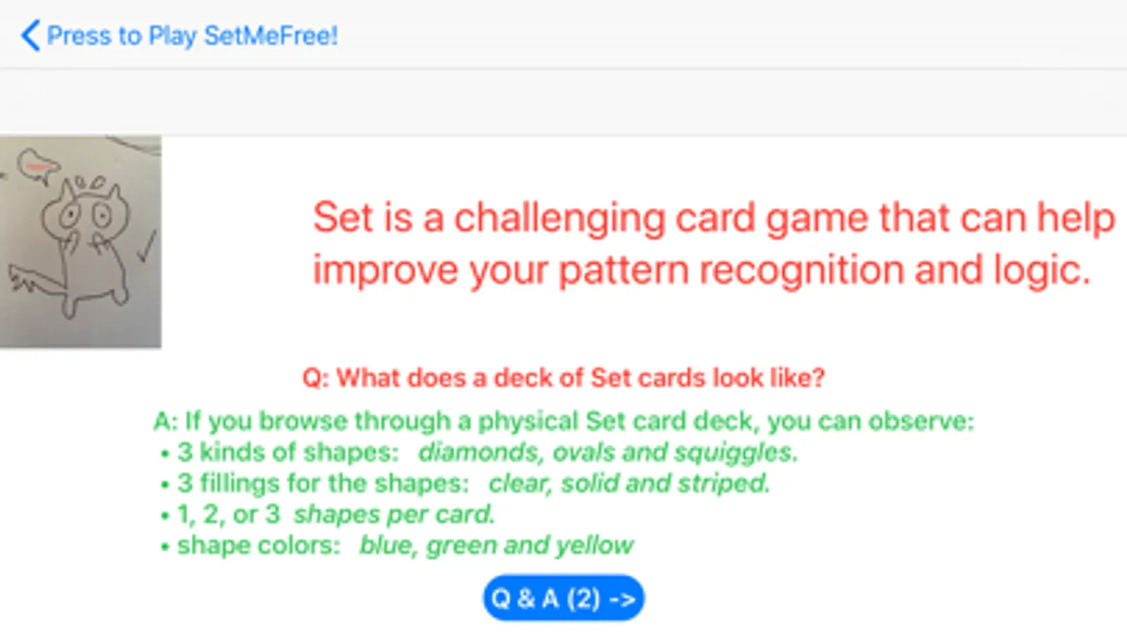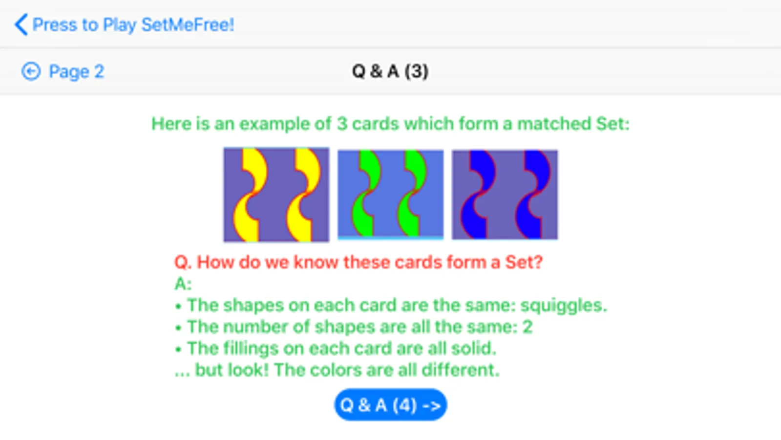 •Set Me Free! A fun way to learn the challenging game of Set.
