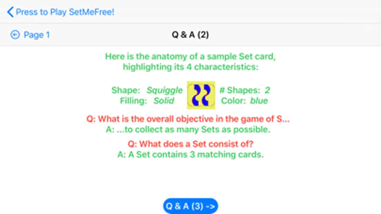 •Or just play the game! Set Me Free! is a fully-featured game of Set.