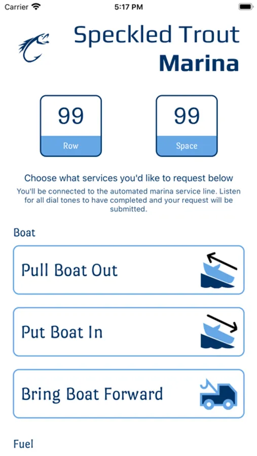 As a member of Speckled Trout Marina you can use this app to contact the Marina to: