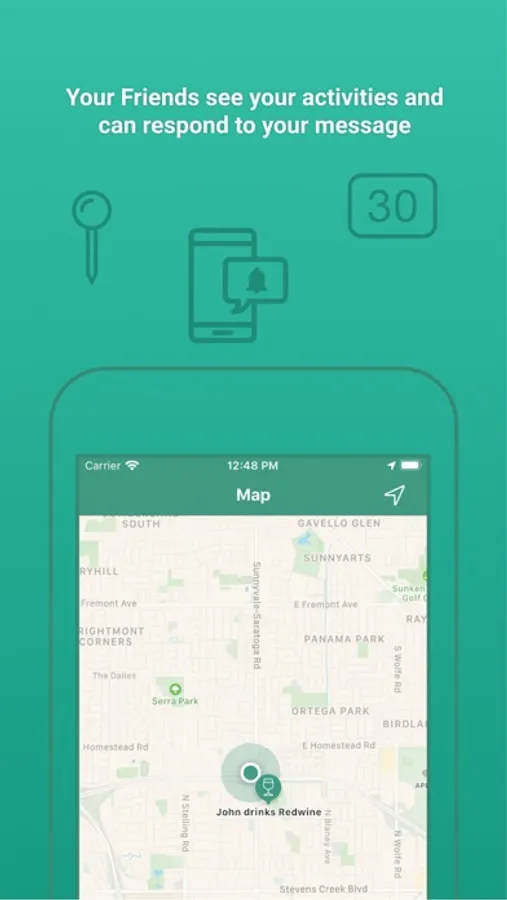 Connect your profile and share activities. Connected friends receive a push notification with your activity and approximate location. Afterwards they can respond to your message.