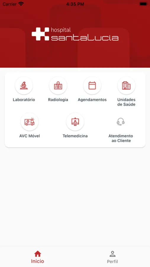 Com o aplicativo do Grupo Santa Lúcia, os pacientes podem acompanhar resultados laboratoriais, laudos de exames de imagens, consultar agendamentos, realizarem atendimento de telemedicina e entrarem em contato com a central de concierges e agendamentos do hospital.