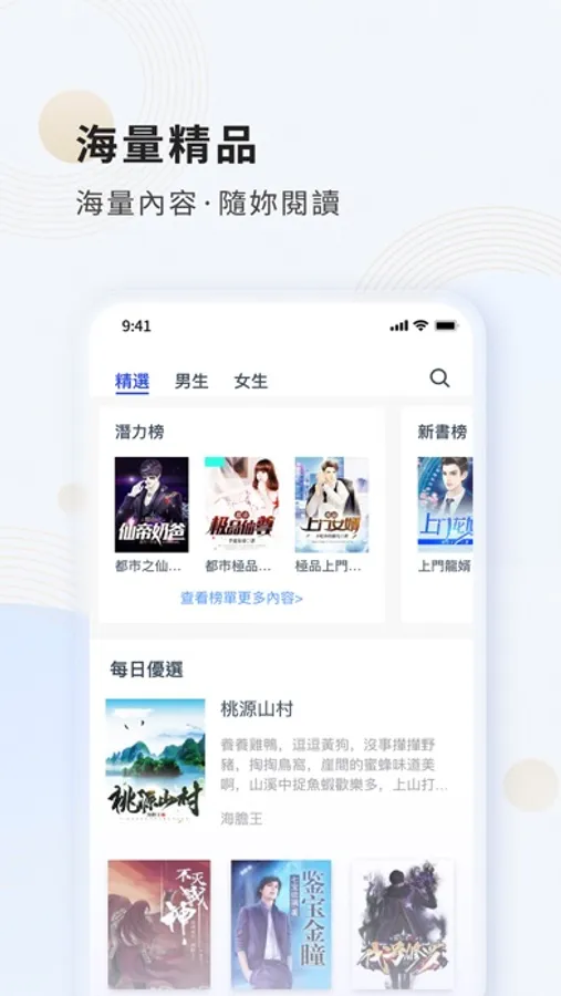 網文:《神棍小村醫》《大主宰》《都市無敵醫聖》《騙婚總裁:獨寵小嬌妻》《丹武至尊》《獨步天下》《鬥破蒼穹》《先婚後愛:老公輕點寵》《花千骨》《萬古天帝》《鬼吹燈》《帝少的心尖寵》《閃婚老公太兇猛》等暢銷書:《明朝那些事兒》《悟空傳》《法醫秦明》《步步驚心》《人民的名義》《三體》《小時》《你好,舊時光》《你的孤獨,雖敗猶榮》《靈魂有香氣的女子》《微微一笑很傾城》等 一年365天不斷更,一言不合就送紅包!趕走生活中無聊的每1秒,包養你一輩子的書單辣文!全中國6億網民瘋狂下載中,新用戶神秘超值禮包等著你勾搭喲!