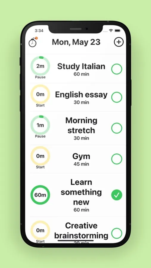 In TimeBomb you can track your progress towards these items. You can start the timer for each item inside of TimeBomb. You can also manually mark a task as completed if you didn’t use the TimeBomb timer. You can have multiple items have a Timer run at the same time.