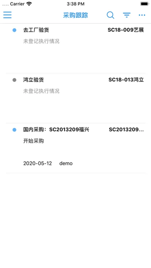 员工可以在手机APP中方便管理与自己相关的待办事项、订单跟踪、采购跟踪、送样跟踪数据,并实时添加进度跟踪记录