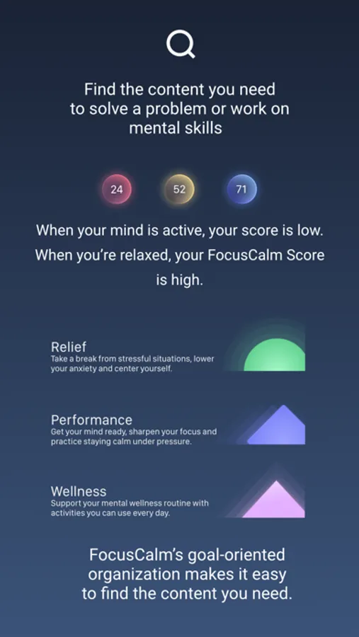 Through our meditations and expert-developed content, FocusCalm helps you LEARN how to put your mind in a FocusCalm state. Then, with our games and activities, you PRACTICE getting into that state more quickly, consistently and deeply. Over time, as you improve your skills, you can then CHALLENGE yourself to keep your FocusCalm high as you perform mental tasks that simulate stressful or difficult situations in life.