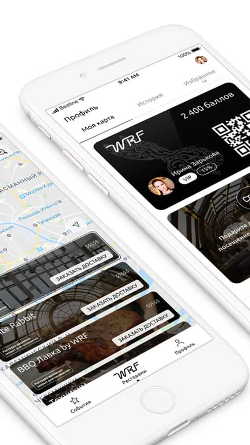Покажите официанту QR-код из приложения при оплате счета, чтобы получить бонусные баллы WRF — вы сможете расплатиться ими уже при следующем посещении!