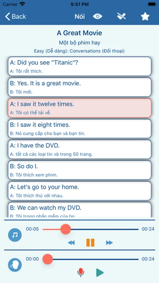 After you listened to the dialogs a lot of times you need to start repeat after the native speaker. The best way to learn is to record yourself and compare your voice with an original native speaker. You should repeat more and more to memorize words and improve your pronunciation.