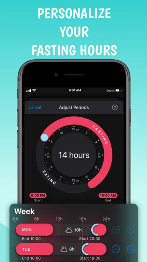 - Extremely visual and clear — dashboard makes it super easy to understand whether you are currently in the eating or fasting window and what your weekly plan looks like.