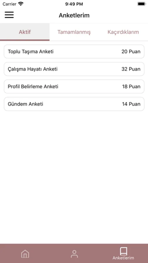 Üye olduktan sonra, Anketlerim menüsü altında size tanımlanan anketleri görebilirsiniz.