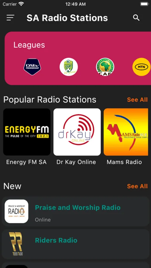 SA Radio Stations App lets you listen to popular radio stations and Stay up-to-date with the latest PSL Results, Fixtures, and Table logs... Mtn8, Nedbank Cup DStv Premiership