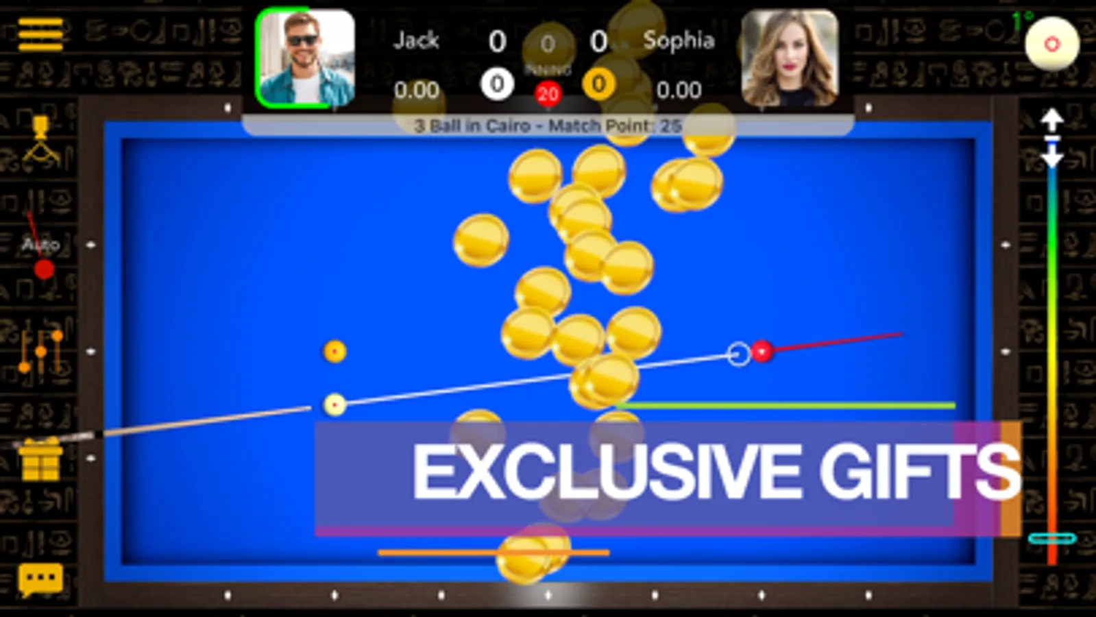 - Improve your skills in Training Mode and make a show of against your rivals. Do not forget that you can do your best shoots with powerful cues having good spin, targeting and power!