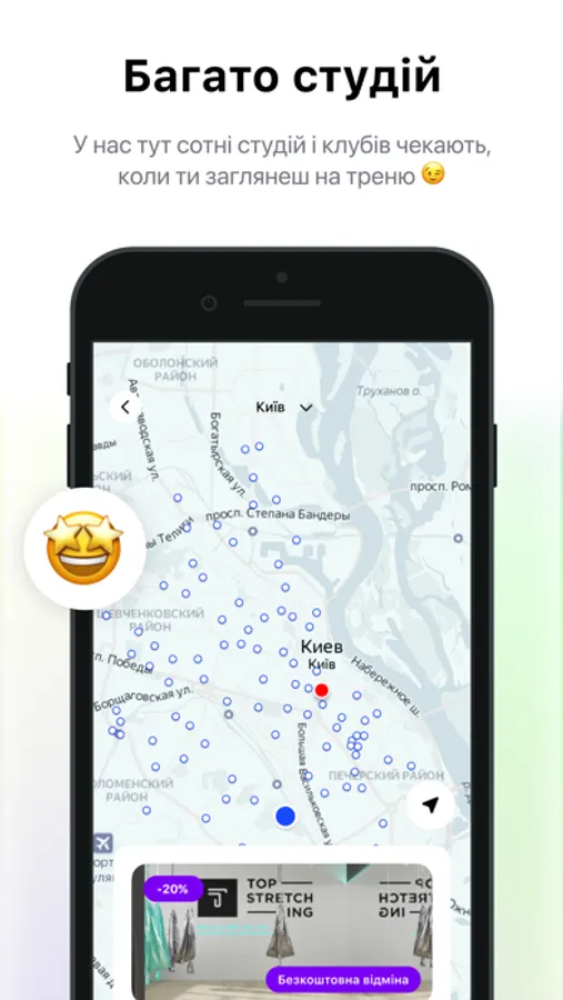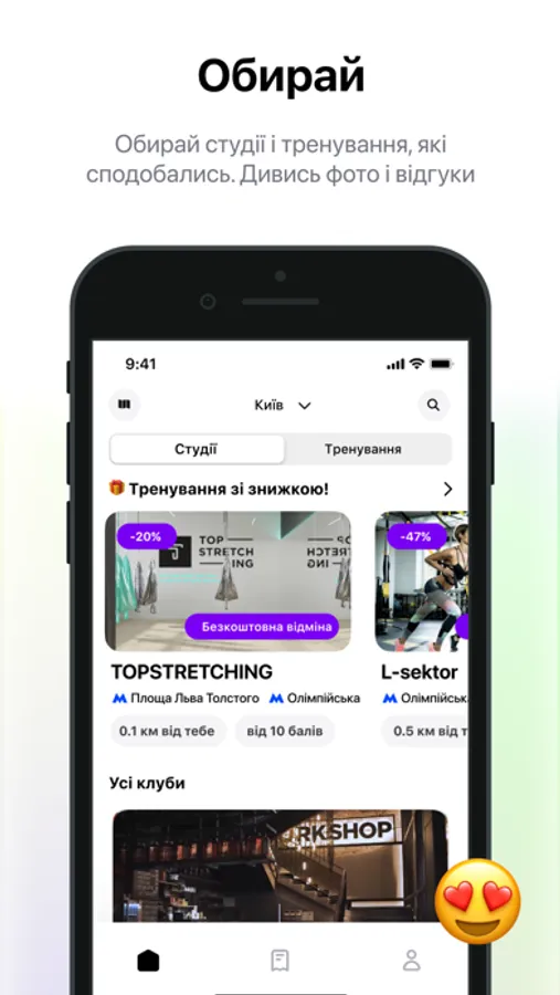Залишатися активним ніколи ще не було так просто і весело. Відкрий для себе нові фітнес-студії прямо зараз, завантаж додаток.