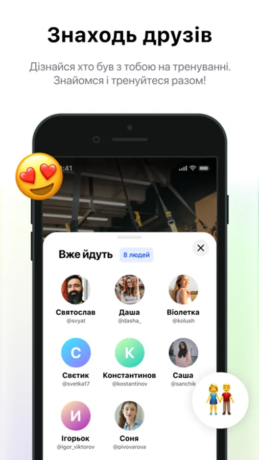 — Знайомства з новими людьми в додатку та круті тренування разом.