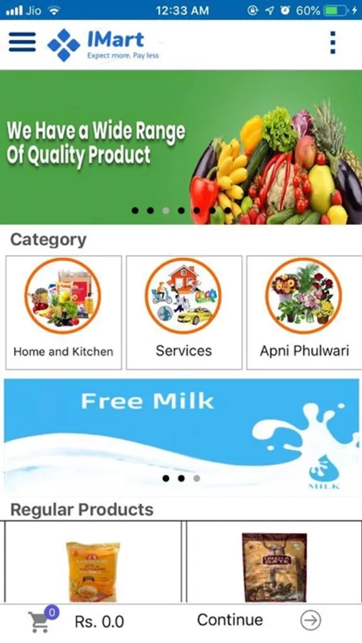Using lMart, you can order Grocery, Fruits and Vegetables, Food, S