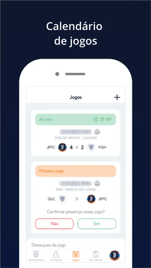 · Organize seu pré e pos jogo com um chat exclusivo por partida