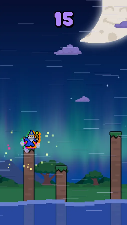 Can you get the high score? Tap and release to hop to the next spot -- go quick and collect a huge bonus, but don't fall into the water!