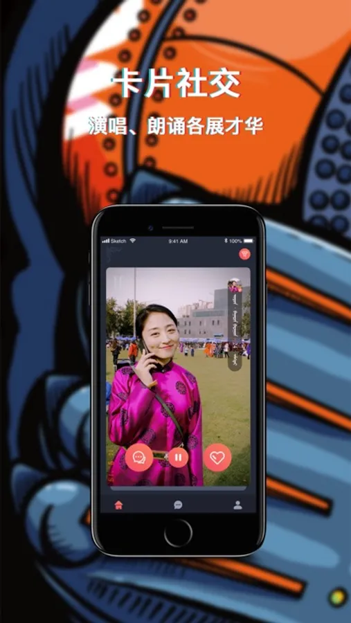【社交卡片】通过录制蒙古语卡片+自己魅力照片,形成HOG独具特色的社交卡片,使得用户更加立体的认识彼此。