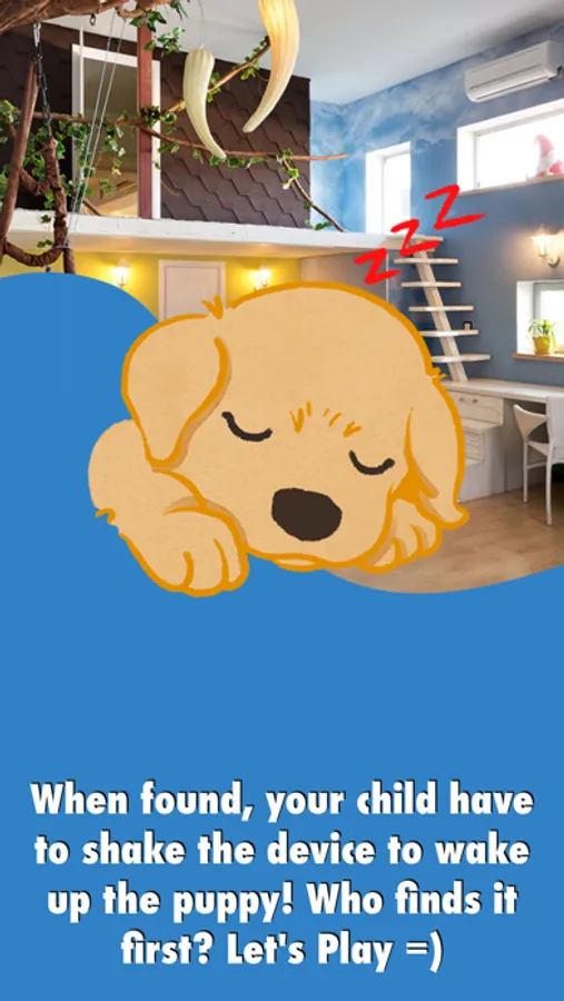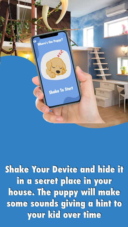 Just shake your device and hide it in a secret place in your house. Now the game begins: the Puppy will make some sounds giving a hint to your kids over time until they find it! When found, shake the device to wake up the snoring puppy! =)
