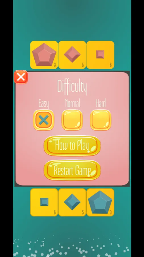 Match four in this original strategic board game. Cover smaller pieces with larger pieces to thwart your opponent's plans! With adjustable difficulty AI and Human vs. Human options, you can play this game however you like! Can you beat the AI on hard? Good luck!